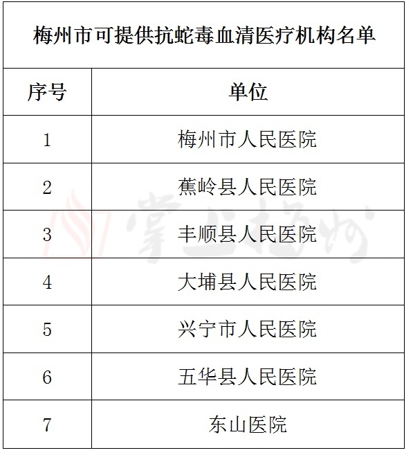 日前,我市公布7家常规备有抗蛇毒血清的医疗机构,以便被蛇咬伤的市民能够获得最及时有效的救治。